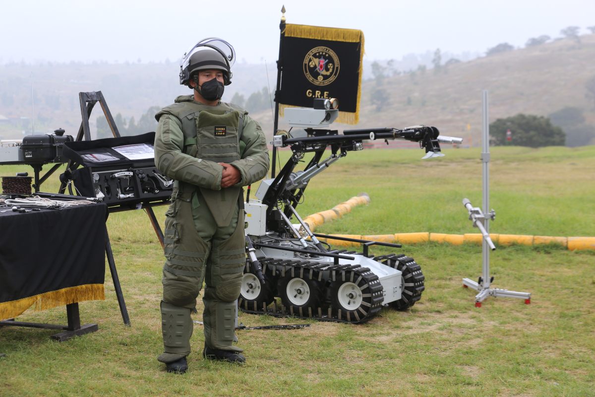 Los momentos son de tensión, el equipo de Rayos X portátil y los binomios canófilos ya pudieron ver y olfatear que se trata de un artefacto explosivo improvisado dentro de una caja de plástico, similar a los utilizados por las fuerzas comando, las guerrillas o los grupos terroristas.