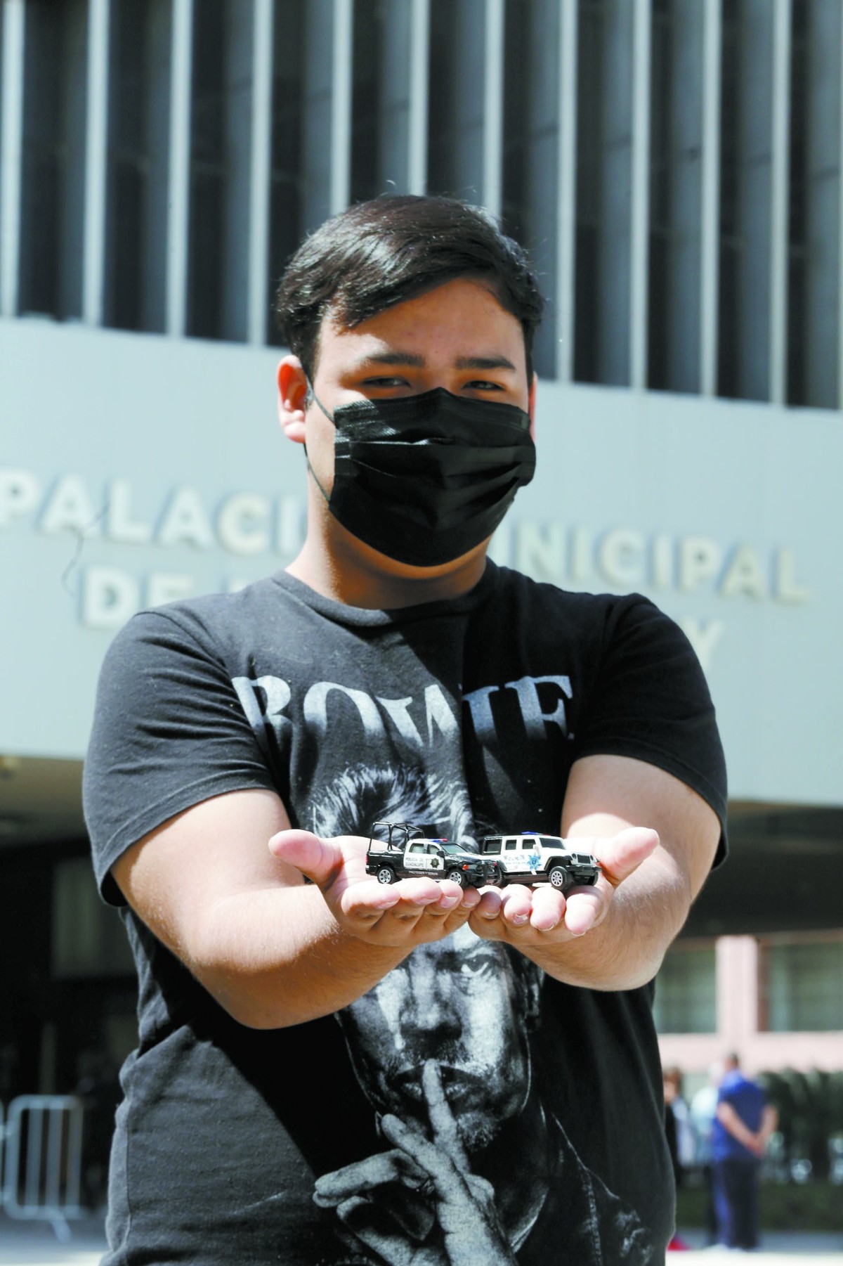De repente, un día en la calle Tyler observó una patrulla y le surgió una idea y un sueño: construir modelos en miniatura de las unidades policiacas y convertirse un día en policía de Monterrey.