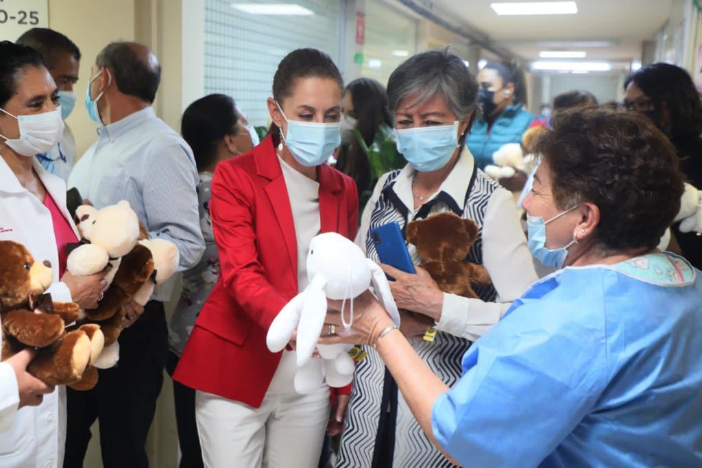 Con motivo del Día de las Madres, la Jefa de Gobierno, Claudia Sheinbaum, también acudió al Hospital Materno Infantil “Inguarán” de la Secretaría de Salud de la Ciudad de México (SEDESA), para obsequiar figuras de peluche a las mamás hospitalizadas así como a las del personal de salud.