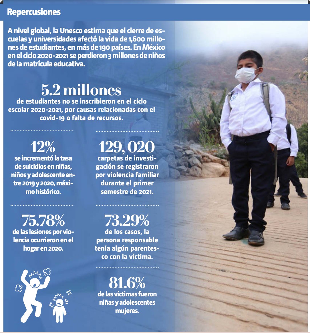 Los datos de la llamada ‘generación covid’ han fluido. A nivel global, la Unesco estima que el cierre de escuelas y universidades afectó la vida de mil 600 millones de estudiantes, en más de 190 países. En México en el ciclo 2020-2021 perdimos 3 millones de niños de la matrícula educativa, se registró una baja de 2.6% en educación básica.