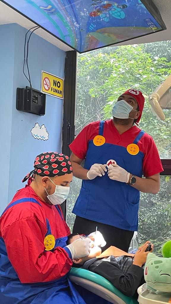 Para muchos padres, maestros y cuidadores de niños, los videojuegos son una herramienta imprescindible que permite mantenerlos tranquilos por un buen rato. Y aunque las consolas jamás suplirán la calidad de la convivencia cara a cara, su papel de entretenimiento es aprovechado en el consultorio Muelitas, dejando que los pacientes jueguen viendo hacia una pantalla pegada al techo, mientras les realizan el tratamiento.