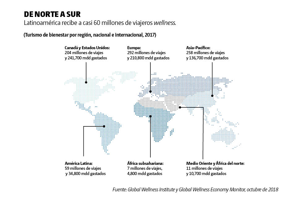 Para cualquier país, este mercado es atractivo si se toma en cuenta que un turista de bienestar gasta, en promedio, 53% más que otro tipo de viajeros. En 2017, los turistas que viajaron a Latinoamérica gastaron alrededor de 1,528 dólares, según GWI.