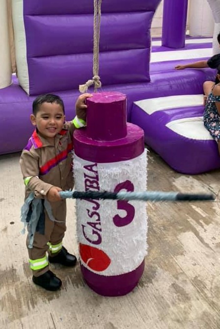 Un niño cumplió tres años de edad y quiso que la temática de su festejo fuera diferente a lo acostumbrado, no fue con algún personaje famoso de caricatura o series, le pidió a su familia que fuera alusivo a una empresa que reparte gas.