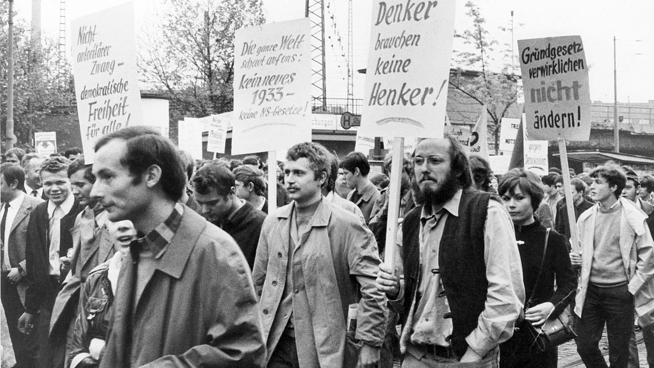 Un detonante más del movimiento, al que todos temen, es el triunfo, en 1966, de la Gran Coalición, conformada por los partidos CDU (demócratas cristianos) y SPD (socialdemócratas). La población presiente este arribo al poder como una acción precursora de un (nuevo) sistema represivo, incluso dictatorial, sobre todo tras anunciar su intención de modificar la Constitución al incluir “leyes de emergencia”, que no eran otra cosa que un intento de devolver el fascismo a Alemania.