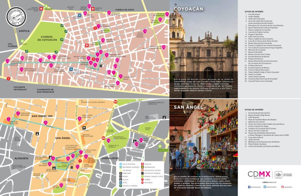 De acuerdo con el mapa turístico, hay 15 lugares que se pueden visitar en el barrio de Sán Ángel como la ex Hacienda de Goycoechea, el museo de Diego Rivera, la plaza de Tenanintla, la calle de Altavista, la famosa Casa del Risco, el Centro Cultural San Ángel y hasta el Museo de Arte Carrillo Gil, entre otros.
