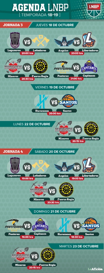Para que no te pierdas ni un solo partido de la Temporada 2018-2019, a continuación, te traemos el calendario completo de la Jornada 3 y 4 de la LNBP.