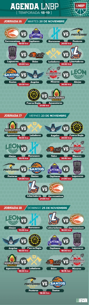 La Liga Nacional de Baloncesto Profesional (LNBP) tendrá esta semana mucha actividad, debido a que se desarrollarán las jornadas 16, 17 y 18 de la Temporada 2018-2019.