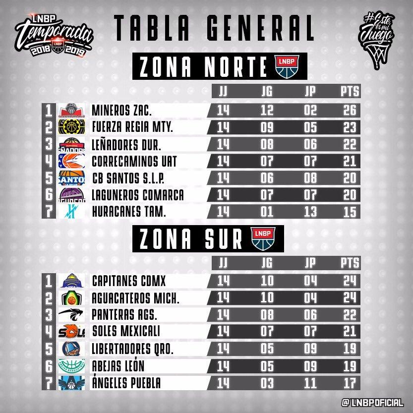 Para que revises cómo marcha en la tabla general tu club favorito de la LNBP, a continuación, te mostramos las posiciones del sector Norte y Sur luego de 14 encuentros enfrentados por conjunto.