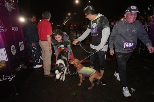 Primero los niños, salieron llenos de entusiasmo dispuestos a cubrir la distancia de 500 metros ante el apoyo de sus padres, gritos de impulso, aplausos y más polvos fluorescentes acompañaron a los infantes hasta la meta.