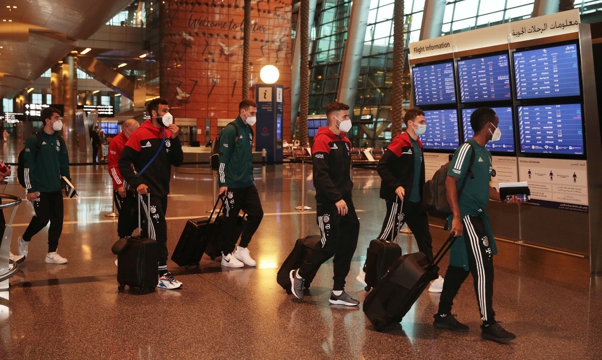 A su llegada a Doha, los jugadores y directivos del Bayern se sometieron a pruebas de covid-19 antes de partir hacia su hotel designado.