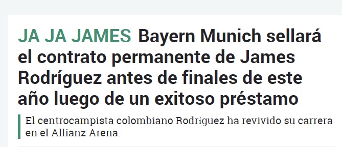 El diario inglés The Sun generó polémica por un titular de una nota donde menciona el buen paso del futbolista colombiano James Rodríguez en el Bayern Múnich.