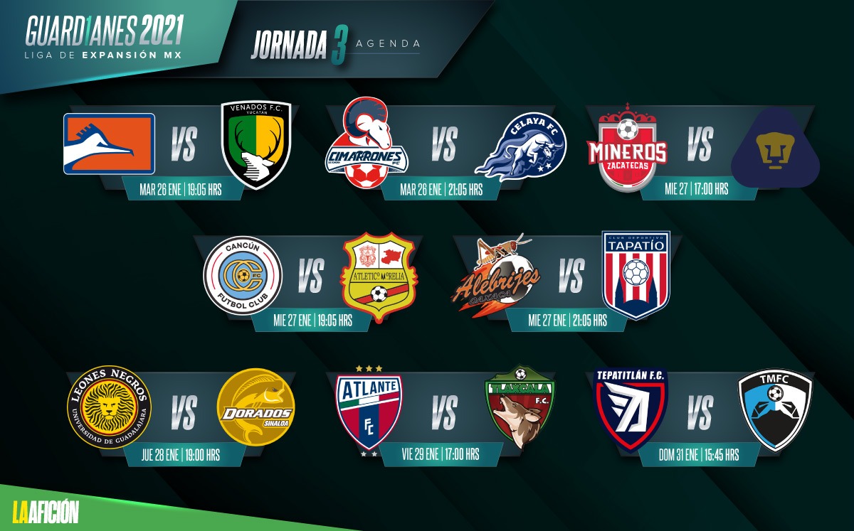 La jornada 3 cerrará con un interesante encuentro entre el líder Tepatitlán y el campeón del Guard1anes 2020 Tampico Madero, es juego se disputará en el Estadio Colomos el domingo 31 en punto de las 15:45 horas.