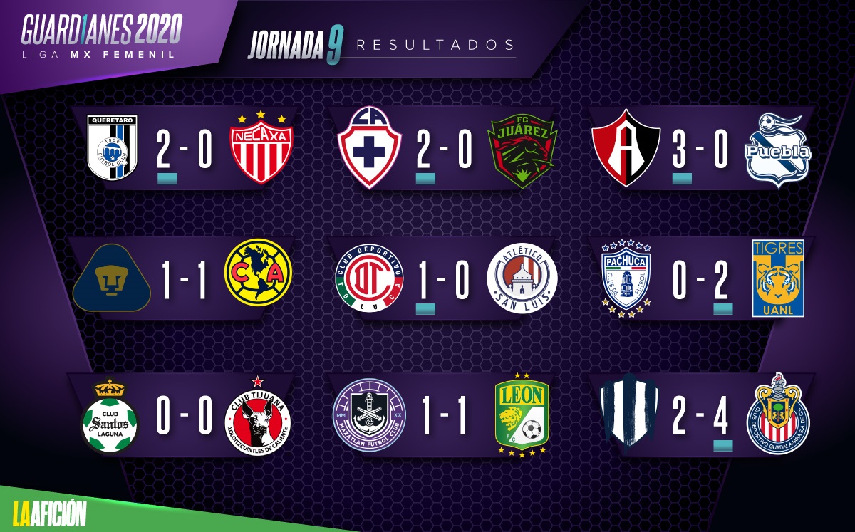 Aquí te dejamos todos los resultados de la jornada 9 del Guardianes 2020 en la Liga MX Femenil.