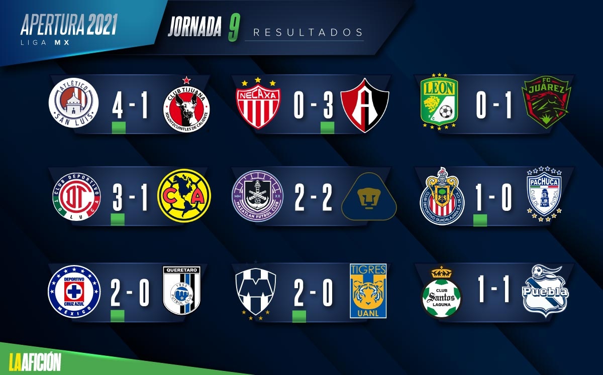 Resultados de la jornada 9 del Apertura 2021 de la Liga MX