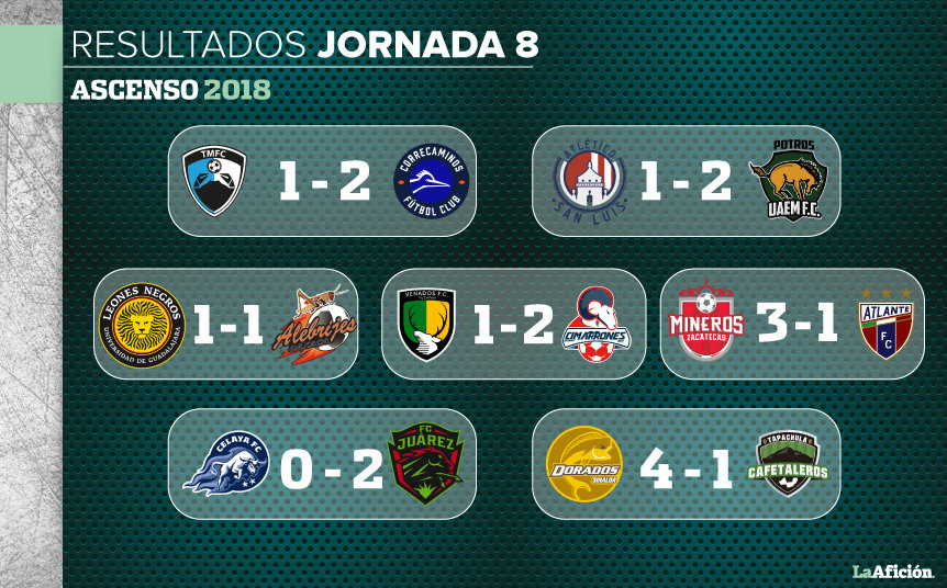El equipo FC Juárez se apoderó del primer sitio del Torneo Apertura 2018 del Ascenso MX, en detrimento del Atlante que cayó al segundo lugar, luego de disputarse la octava jornada.