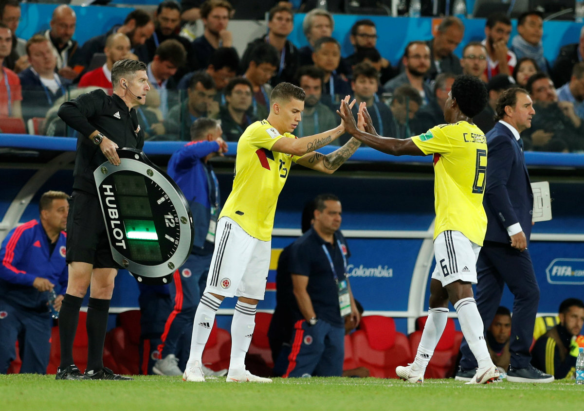 MINUTO 114: Cambio de Colombia, sale Santiago Arias e ingresa Cristian Zapata.
