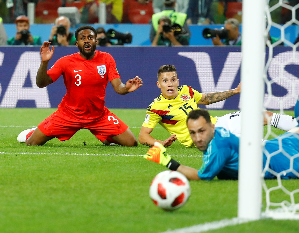 PENALES: ¡LO ATAJA PICKFORD! El portero inglés a una mano detiene el tiro de Carlos Bacca.