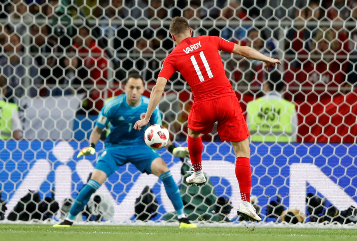 MINUTO 106: Vardy estuvo cerca de marcar, remata dentro del área pero Ospina se queda con el balón.