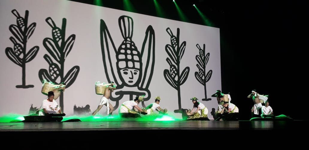 Las luces del recinto se apagaron y un video iluminó la pared de atrás del escenario, imágenes que permanecieron a lo largo de la función, cambiando de acuerdo con la época representada; el inicio, llevó al público a la gran Tenochtitlán.