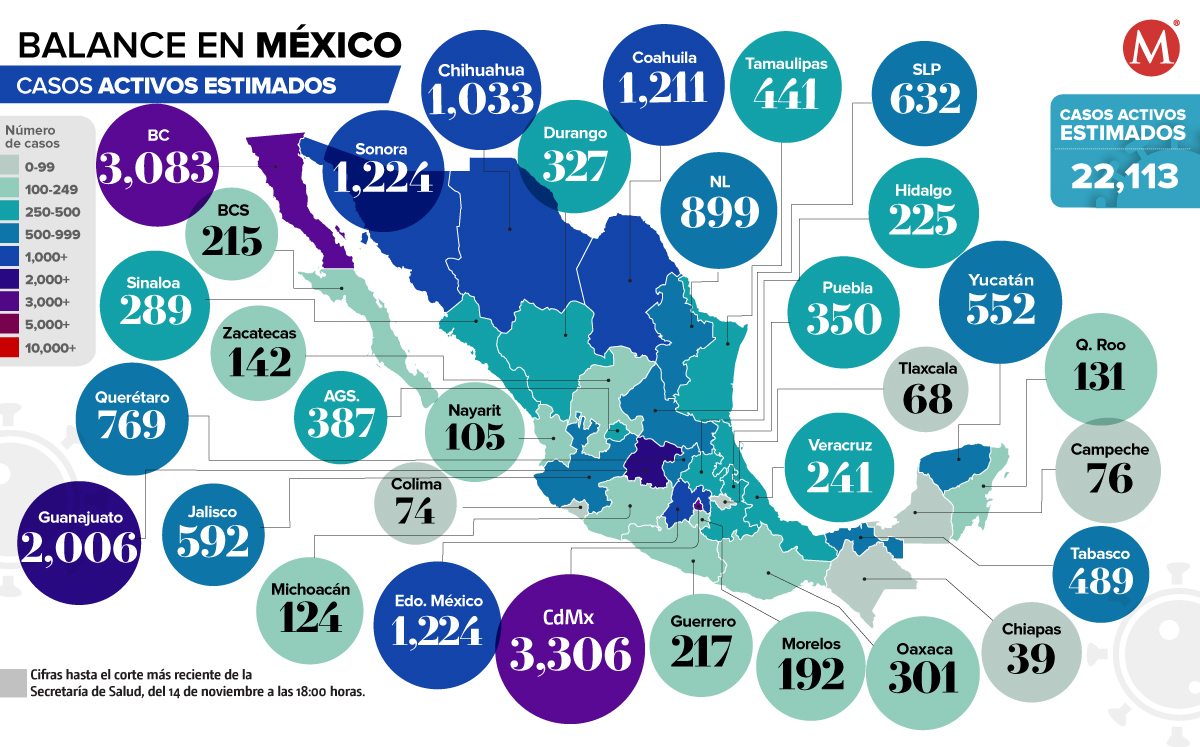 En contagios por estado, la Ciudad de México sigue en la primera posición con 977 mil 533 casos nuevos, seguido del Estado de México con 376 mil 632, Nuevo León con 205 mil 486 y Guanajuato con 192 mil 548.
