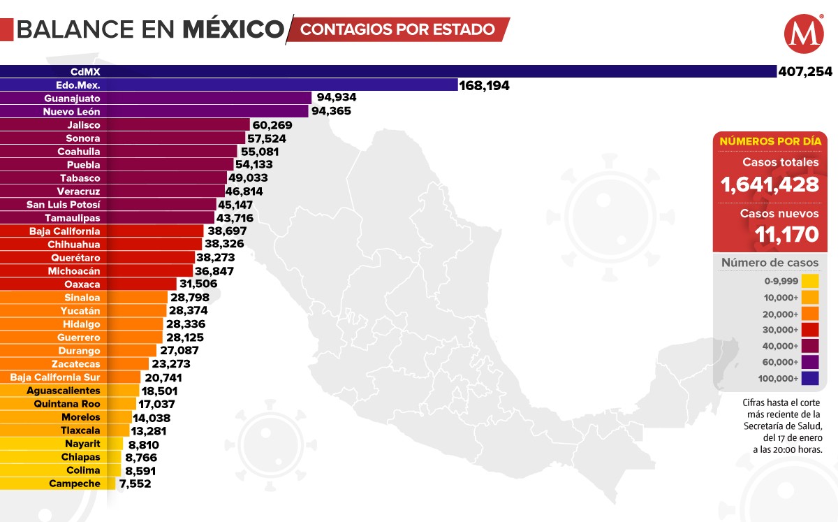 En tanto, la Ciudad de México es la entidad con una mayor tasa acumulada, con 4 mil 515.69 casos por cada 100 mil habitantes.