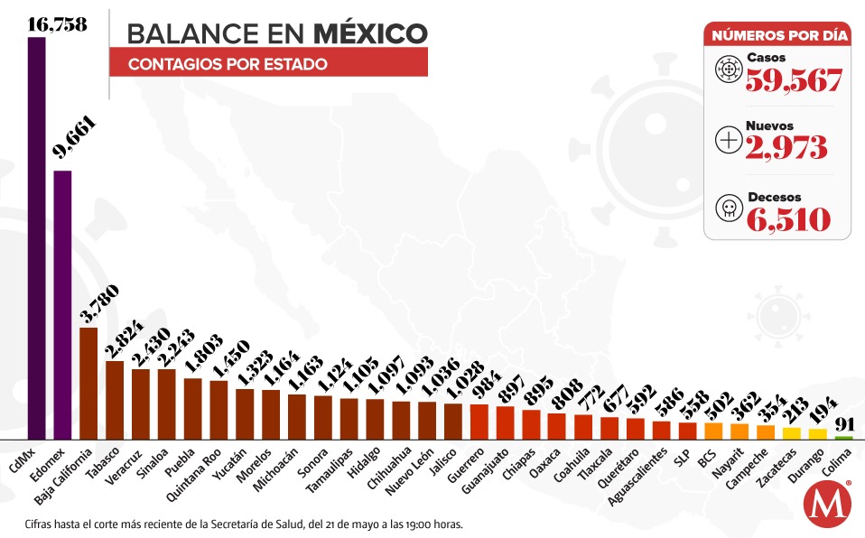Pese a que ya se alcanzó el máximo de contagios en el Valle de México, según autoridades de la Secretaría de Salud, el Estado de México y la Ciudad de México siguen presentando un gran aumento diario de contagios y tan sólo en las últimas 24 horas, la capital del país concentró casi un tercio del total de casos que se detectaron a nivel nacional.