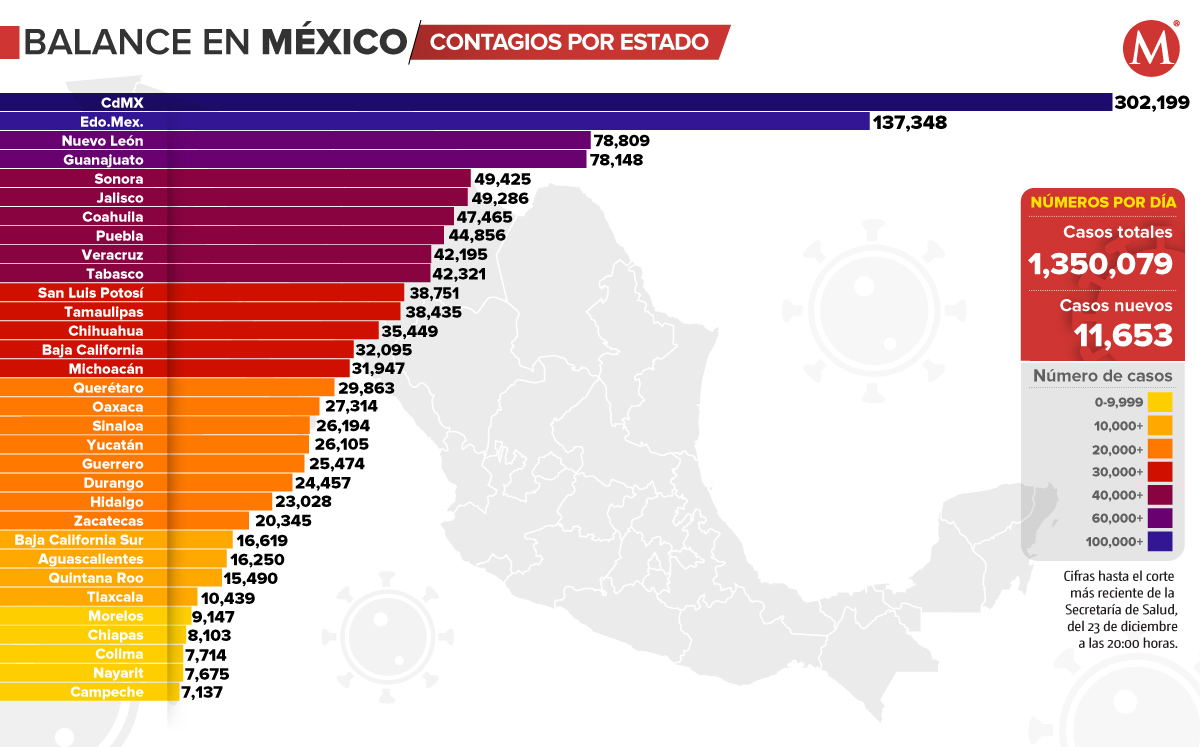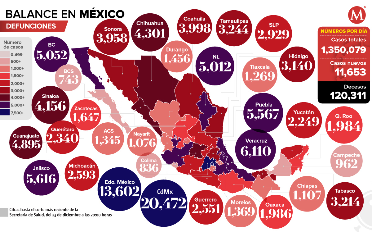 En tanto, Baja California, Chiapas y Sinaloa son los estados con mayor letalidad de coronavirus, donde han muerto alrededor de 16 personas por cada 100 que se han contagiado.