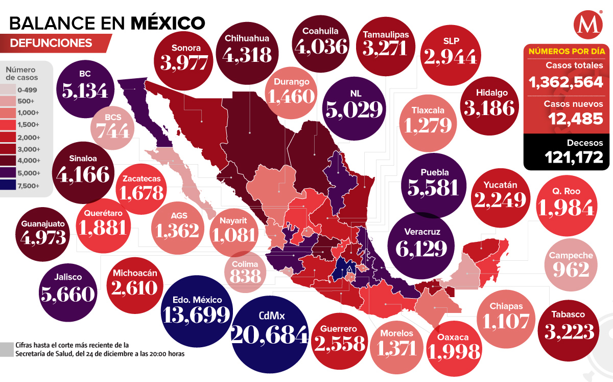 Mapa de muertes por coronavirus en México