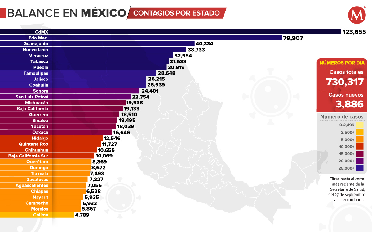 La Ciudad de México es el estado que tiene la segunda mayor tasa de incidencia, con 52 contagios por cada 100 mil habitantes.