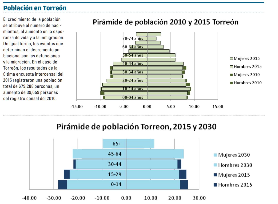 Es necesario tomar en consideración que aunque el número promedio de hijos por mujer en Torreón sea de 2.1, lo que mantiene un crecimiento poblacional constante, los grupos en edad fértil tienen cada vez menor población.