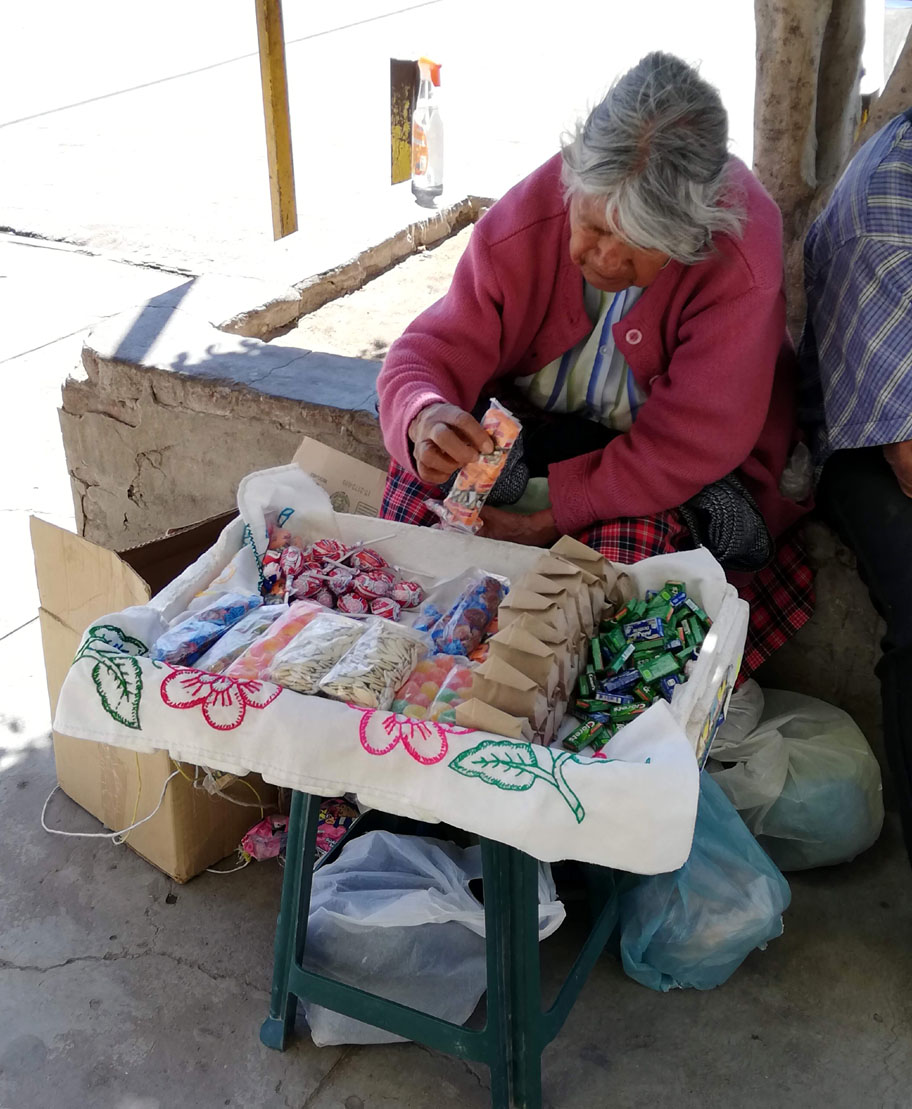 María Felisa Martínez Valerio, de 80 años de edad, vende dulces en la esquina de la calle Madero y Manuel Acuña en el centro de Francisco I. Madero, en Coahuila, y asegura que no festejará el 10 de Mayo porque tiene que trabajar para poder comer.