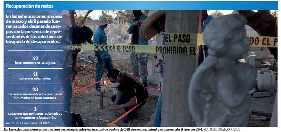 Pese a las exhumaciones masivas realizadas en marzo y mayo pasado por autoridades estatales, los dos panteones municipales de Torreón están saturados.