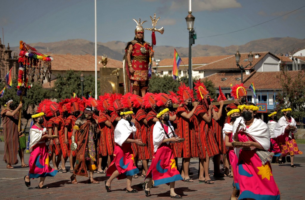 En la ceremonia unos actores encarnan a Pachacútec, el forjador del imperio inca, y a su esposa, Mama Anahuarque, quienes llegan desde la plaza principal de Cusco.