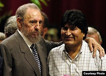 Evo Morales considera su mentor y padre ideológico a Fidel Castro, quien estuvo oficialmente desde los 33 hasta los 82 años en el poder en Cuba (y renunció a él cuando una enfermedad le impidió continuar).
