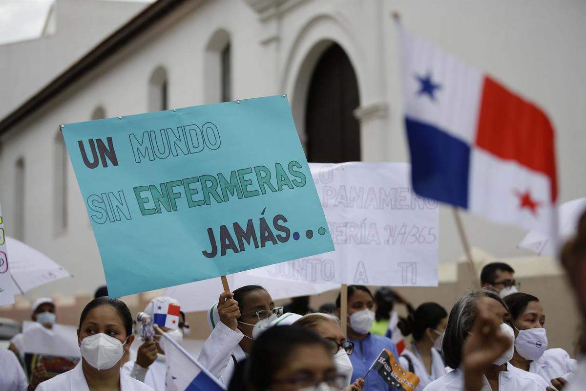 El gremio de las enfermeras de Panamá volvió a protestar este miércoles por las malas condiciones laborales, agudizadas a raíz de la pandemia, resaltando que el gobierno no cumple con los acuerdos salariales pactados desde hace meses porque se "excusa" de que "no tiene para cumplir".