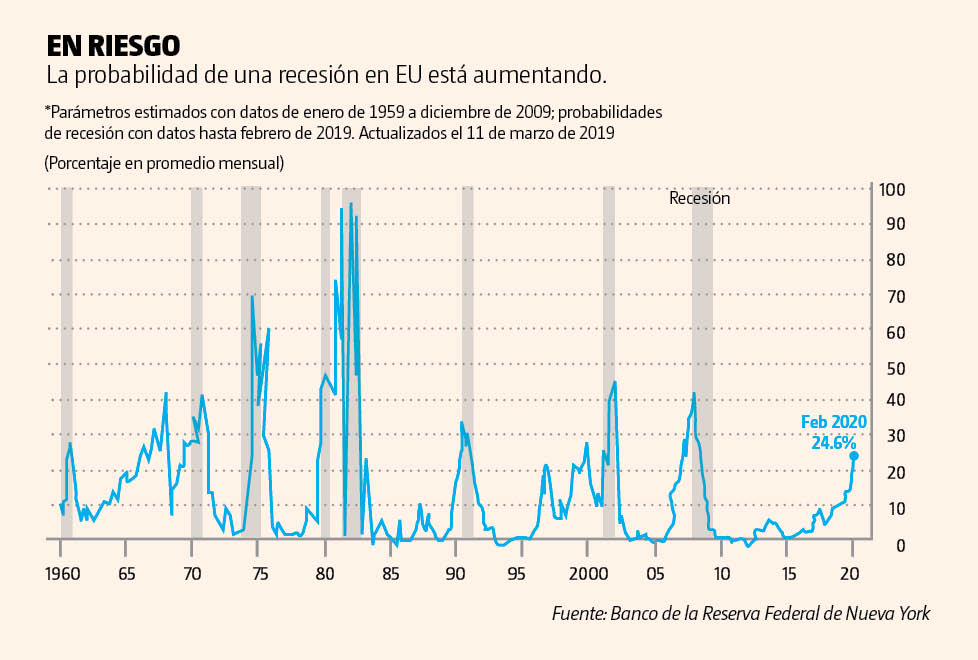 El 22 de marzo, las sacudidas del mercado comenzaron cuando la diferencia entre los rendimientos de los bonos del Tesoro a 10 años y a tres meses se volvió negativa por primera vez desde 2007. Sin embargo, el mercado de bonos es una guía lejos de ser infalible.