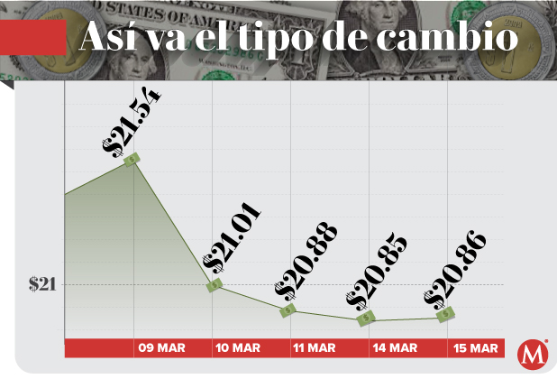 Durante la sesión, se espera que el tipo de cambio cotice entre 20.78 y 20.94 pesos por dólar.
