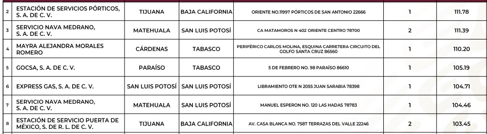 Éstas ocho gasolineras despacharon menor combustible del que se pagó, según las verificaciones que Profeco realizó del 20 al 24 de mayo: