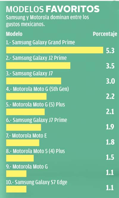 Al cierre de 2017, Samsung continúa como la marca líder entre las preferencias de los poseedores de teléfonos inteligentes mexicanos, de forma que 32.9 por ciento de los dispositivos en manos de mexicanos son de este fabricante”, dijo.