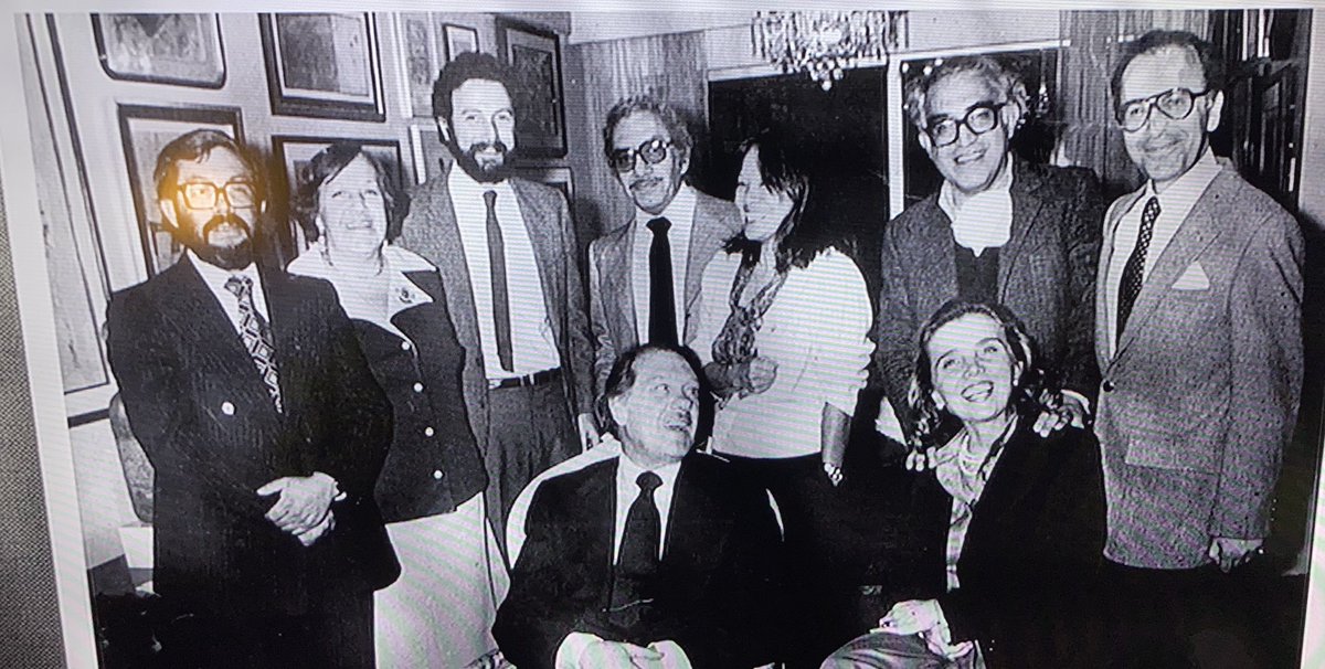 De izquierda a derecha, Miguel Ángel Granados Chapas, Sara Moiron, Agustín Gutiérrez Canet, Manuel Buendía, Margo Su, Carlos Monsiváis e Iván Restrepo. Sentados Jorge Castañeda (padre) y Elena Poniatowska.