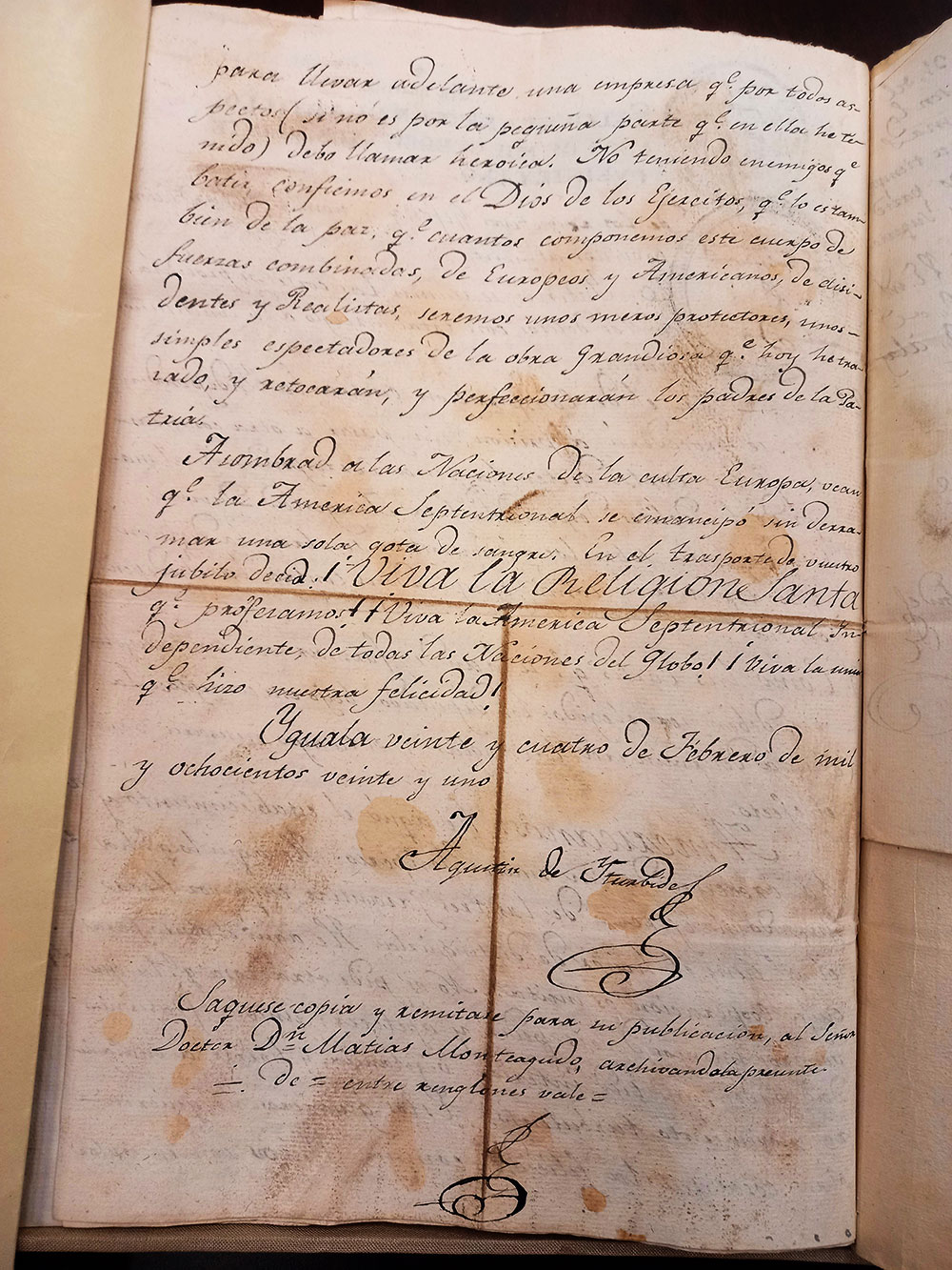 El documento con la firma de Agustín de Iturbide.