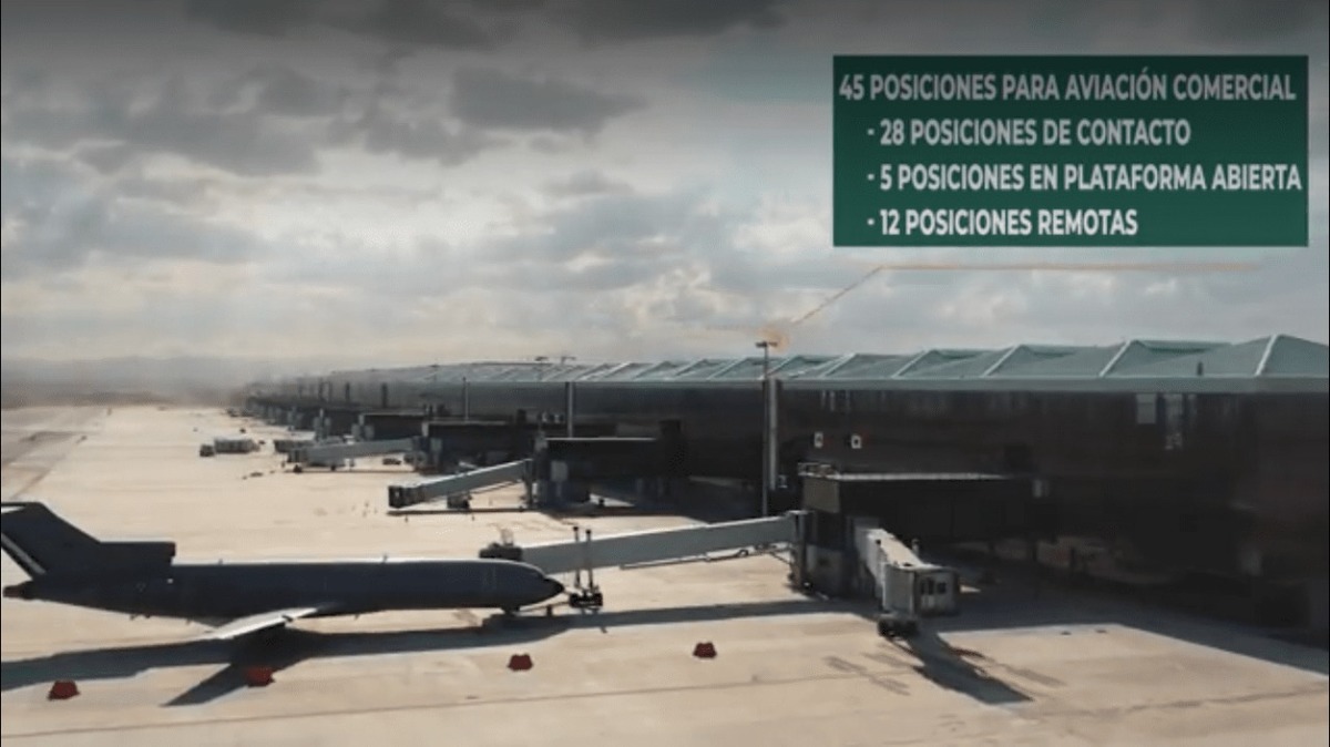 La meta del Agrupamiento de Ingenieros Felipe Ángeles, para la inauguración del 21 de marzo, son 45 posiciones para aviación comercial: 28 de contacto, 5 en plataforma abierta y 12 remotas.
