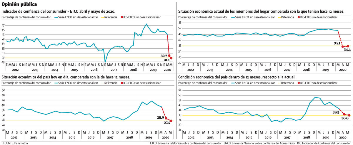 Los datos no son comparables en sentido estricto. El Inegi consideró necesario usar dos nombres para hacer esta distinción. El acrónimo utilizado desde 2012 para definir la Encuesta Nacional de Confianza del Consumidor no puede ser usado nuevamente para esta entrega (ENCO). La nueva medición propuesta se llama ETCO: Encuesta Telefónica de Confianza del Consumidor.