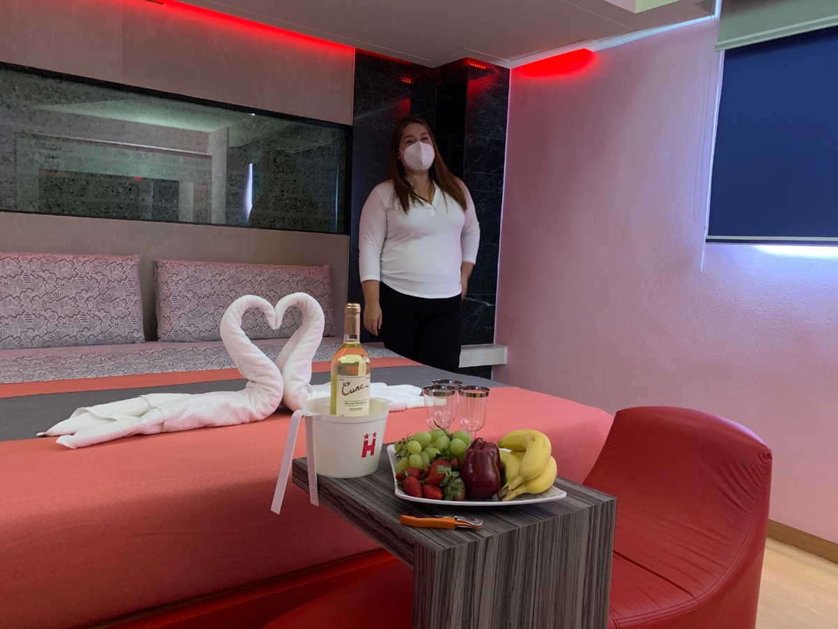 Lo acompaña Adriana García, administradora del Arena, quien refiere que cada pareja o trío es responsable de lo que suceda en cada cuarto, algunos de éstos con sillón ondulado conocido como potro; y hacia afuera, aclara, debe haber respeto y discreción con los otros clientes.
