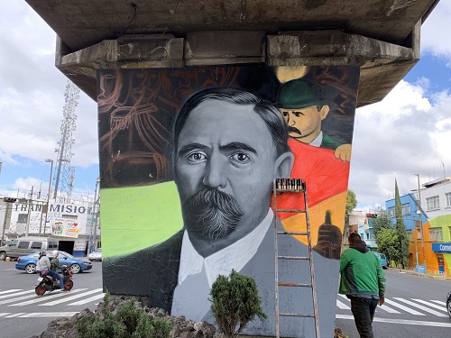 “Se trabajó de los aztecas a los mayas y de la Reforma al México moderno”, ilustra Morelos Prado. “Ahorita estamos trabajando, como pueden ver, con personajes de la Revolución. Y aparte, del mercado de Jamaica hacia el Viaducto, se va a trabajar el México Moderno”.