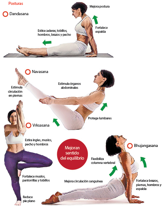 4. Dandasana, la postura del Bastón. Para la maestra Anne Moxey, realizar esta asana tiene como beneficios fortalecer los músculos de la espalda, ayuda a mejorar la postura corporal, a extender los hombros y abrir el pecho, entre otras. Se trata esencialmente de mantener una columna vertebral larga y recta mientras está bajo una carga, lo que hace que sea mucho más fácil mantener una postura correcta al estar de pie, sentado o caminando.