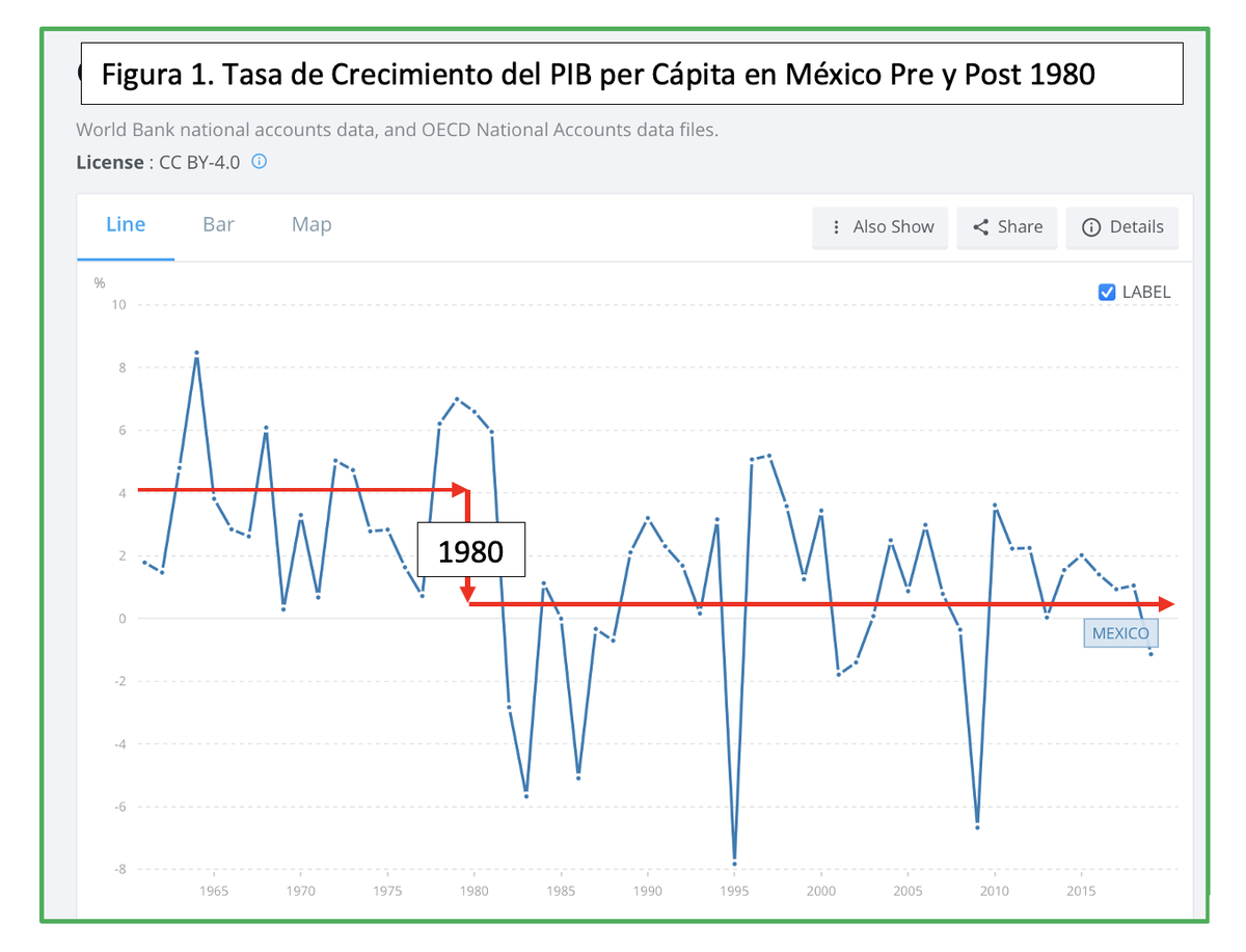 Las razones que expone coleccionan no solo las acusaciones que copia del ambiente, de lo que no va con su modelo, sino también bondades que reconoce pero que tampoco le “checan”, como que AMLO “ha hecho cosas buenas como mejorar las pensiones, subsidiando el aprendizaje de los jóvenes, manteniendo el gasto y la deuda bajo control y el ‘rating’ de las calificadoras tolerablemente firme” o “la mayoría está insatisfecha con la manera en que el país está siendo conducido, pero 61 por ciento aprueba al señor López Obrador”, y hasta mintiendo sobre el “largo periodo de expansión que siguió después de la liberalización de los 80”, cuando justamente a partir de los 80 se marca el periodo neoliberal mexicano donde nuestro PIB per cápita dejó de crecer y nuestro PIB real pasó de un promedio de crecimiento de 7 a menos de 2 por ciento. Y al final coronando con su acusación a nuestro big brother del norte, advirtiéndole de un posible brote de autoritarismo como si aún estuviéramos en época del colonialismo.
