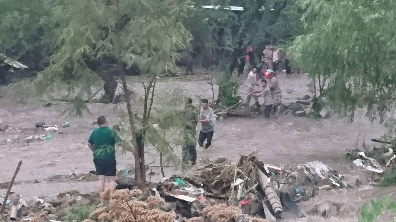 Un joven que viajaba en el tren inundado transmitió en vivo a través de Facebook el momento en que él y otros pasajeros fueron rescatados.