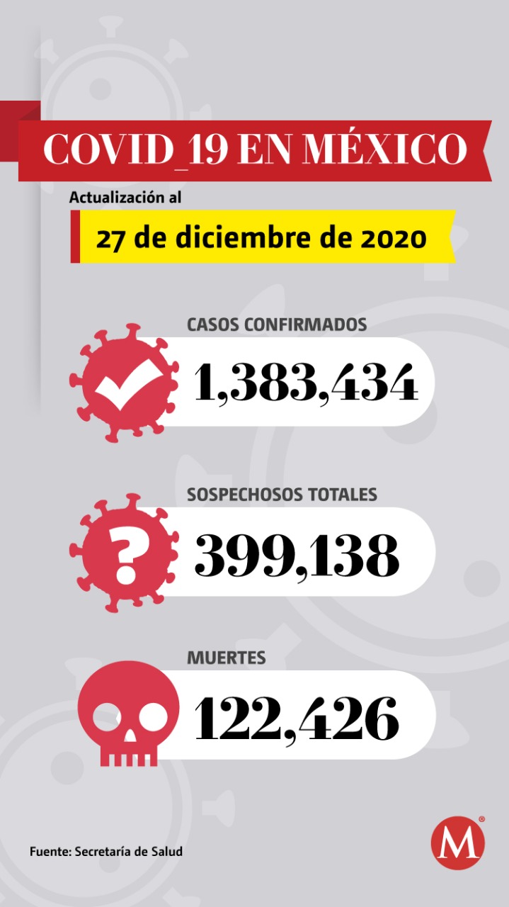 México sumó 122 mil 426 muertes por covid-19 este domingo, de acuerdo con el reporte de la Secretaría de Salud que dio a conocer las cifras de la pandemia en el país al 27 de diciembre.