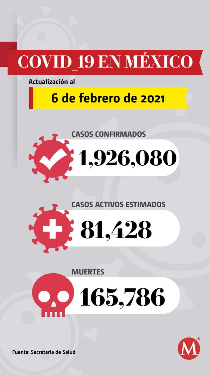 México resgistró mil 496 nuevas muertes por covid-19 en un día, de acuerdo con el reporte de la Secretaría de Salud que dio a conocer las cifras de la pandemia en el país al 6 de febrero.